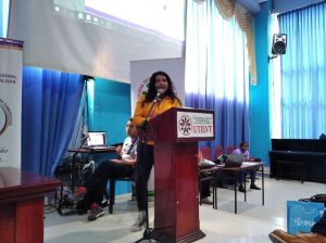 Diane Rodríguez, transfeminista ecuatoriana en foro académico por el día internacional de la mujer