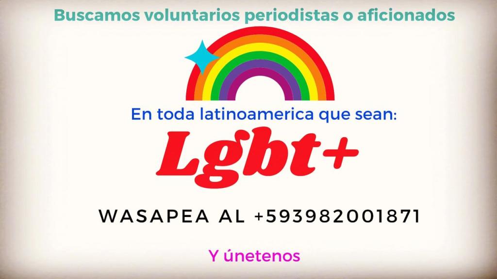 Buscamos voluntarios editorialistas, periodistas LGBT en toda LAC. Únete a nuestro diario! Escríbenos +593982001871