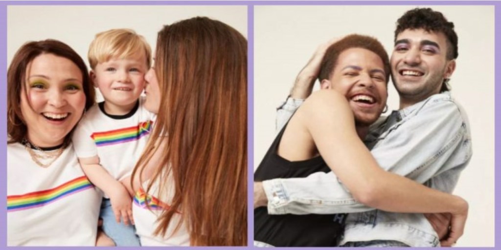 Y lo que a nosotras nos encanta, por supuesto, es que la campaña publicitaria la protagonicen dos mamás lesbianas junto a su pequeño. En la imagen podemos ver a una pareja y a un niño con unas camisetas blancas y el arcoíris en medio.