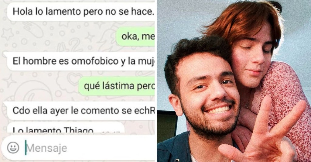 “Lo lamento, pero no se hace por el tema de tu pareja. El hombre es homofóbico y a la mujer le da lo mismo; cuando ella le comentó, se echaron para atrás“, decía el mensaje que el chico recibió.