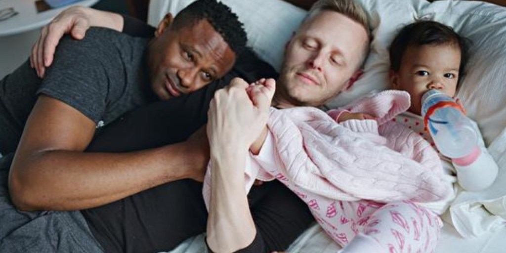 Una de las historias más bonitas es la de Matthew Eledge y Eliot Dougherty, porque habla de cómo se unió la familia para ayudarles a tener a su hija Uma. La hermana de Eliot se ofreció a donar un óvulo, que se fertilizó con la esperma de Matt. Y fue la madre de Matt la que gestó al bebé, a pesar de tener más de 60 años.